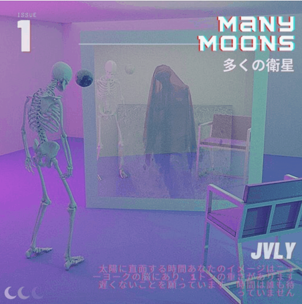 “This one formed in a strange way for me,but it was still quite an organic process. I had written the bones of the song and then I linked up with my friend Campbell who helped bring it to life. We spent a couple of sessions bouncing ideas back and forth until we had the most part of the instrumentation and soundscapes in shape. After that we called in Joey (who is another member in Campbell’s band Vacations)to hit some drums for us. A lot of the time when it comes to laying down the vocals and melodies,I find myself mumbling along till I find the right pocket, but ‘many moons’ was one of those rare cases where the words kind of just leaked out at that stage. I always wonder when that happens whether, even if subconsciously, there was something there you had to say.” – JVLY